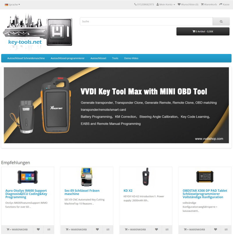 Online store for immobilizer copiers, key cutters, etc. The store is based on the OpenCart 2.0 e-commerce platform. English, Greek and German languages are supported, using CleanURLs and the PayPal API for completing online payments has been integrated.